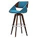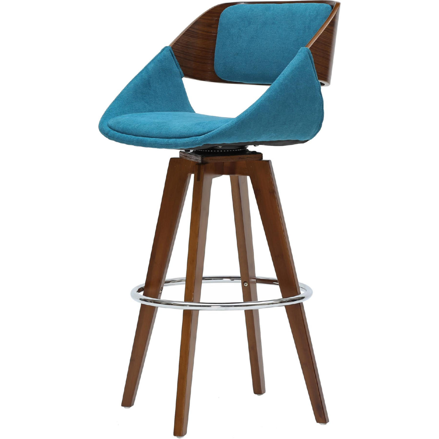 - Chic Mid-Century 360-degree swivel counter stool features cut-out back with walnut bent wood and soft fabric for the back and seat cushions.