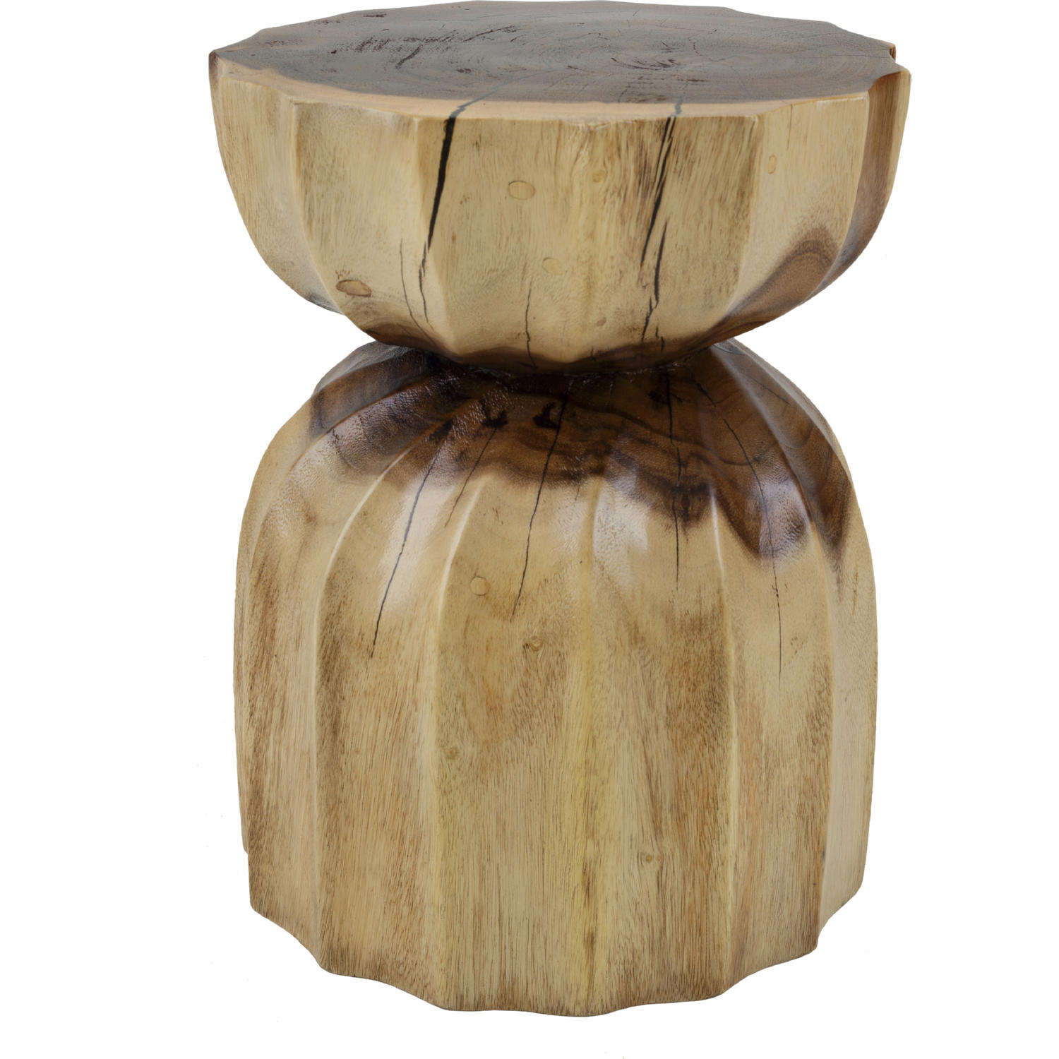 - This Hourglass shape table works double duty as a stool or side table. Skilled hands crafted the work of art made of solid Trembesi wood. Round and columnar in shape, expect slight variation in each piece.