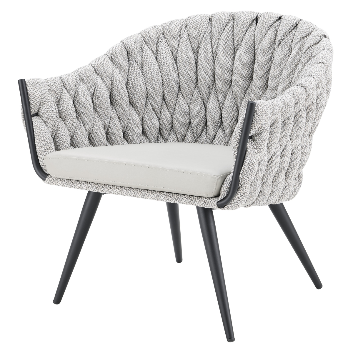 - Add a touch of luxe to the living space, the Fabian accent chair brings intricate detailing with its unique, weaving knit pattern. A padded faux leather cushion provides plush seating on a monochromatic tone.