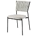 - Add a touch of luxe to the dining space! The Leander chair brings intricate detailing with its unique, woven knit pattern. Also, padded faux leather cushion that provides plush seating on a monochromatic gray tone and slim, black powder coated steel legs.