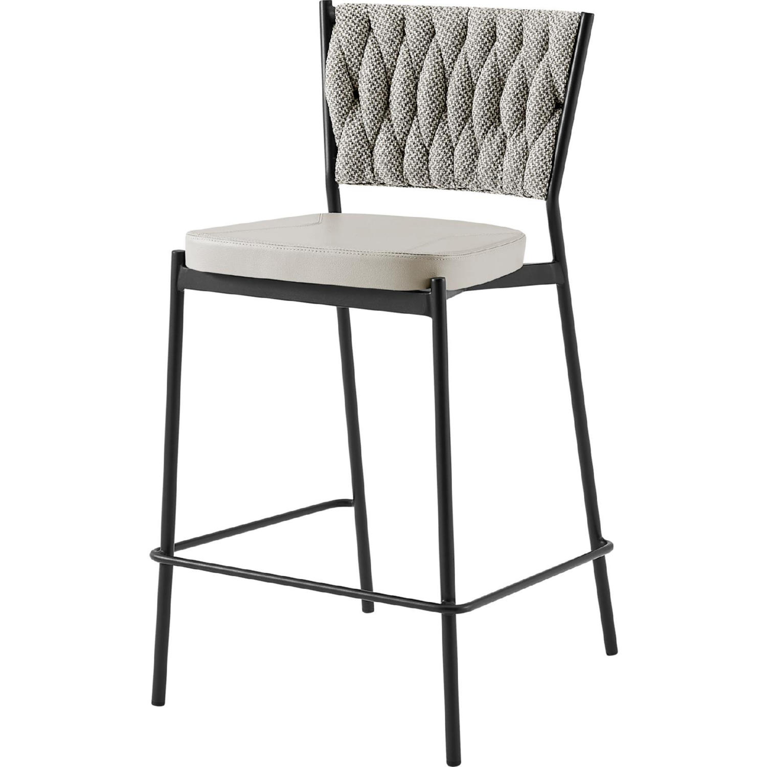 - Add a touch of luxe to the kitchen space! The Leander 25" seat height counter stool brings intricate detailing with its unique, woven knit pattern. Also, padded faux leather cushion that provides plush seating on a monochromatic gray tone and slim, black powder coated steel legs.