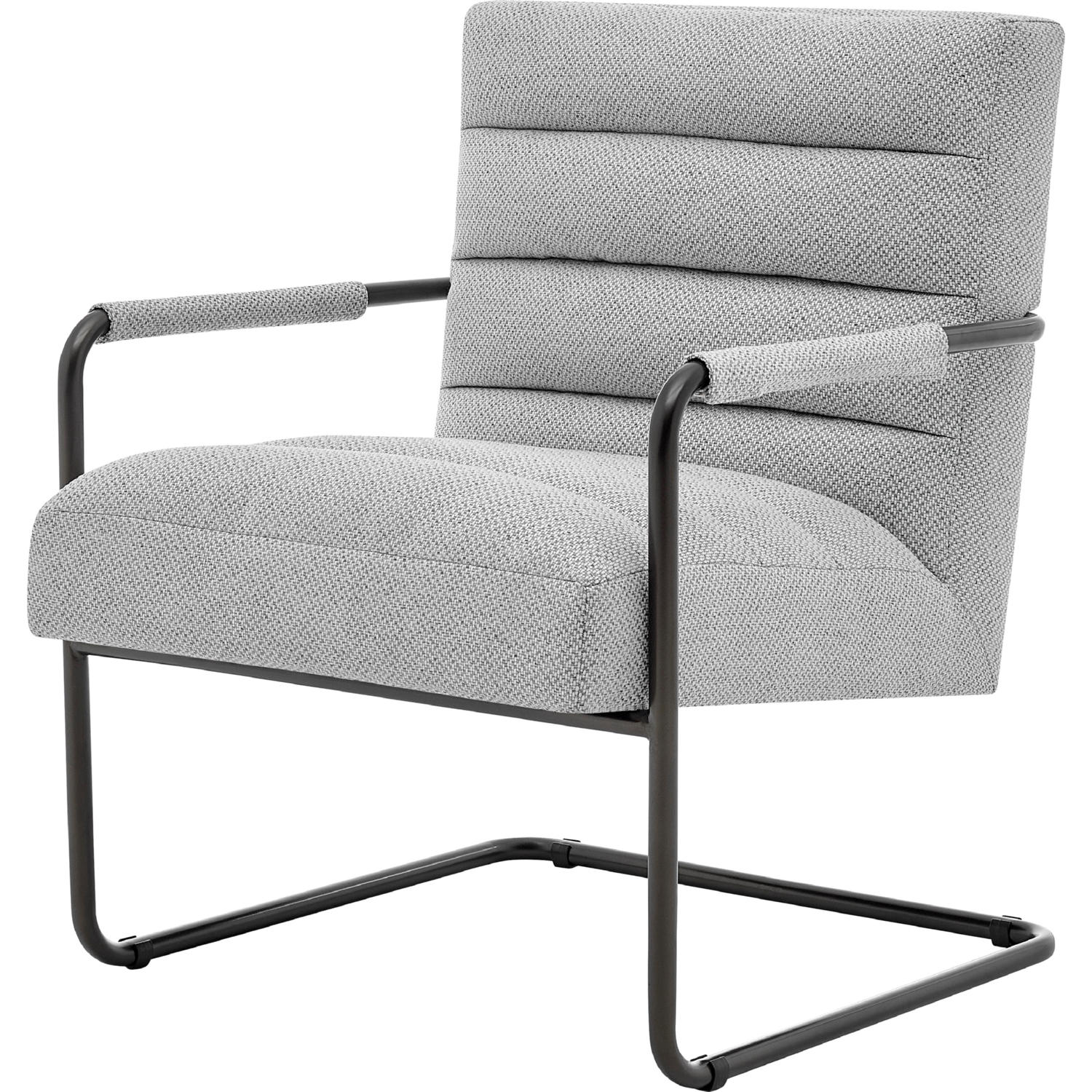 - MODERN VINTAGE - stylish vertical channel tufted upholstery, arm bands and brass painted cantilever legs make this chair a handsome addition to a bachelor's pad or modern living room decor. Also, plush with high-density foam cushion for hours of entertaining and lounging.