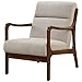 - Delightful Mid-Century appeal is timeless and cozy like the Anton Chair. Featuring minimal channel tufting and comfy seating on basic Light Brown upholstery while fashioned on sculpted dark Walnut solid wood frame.