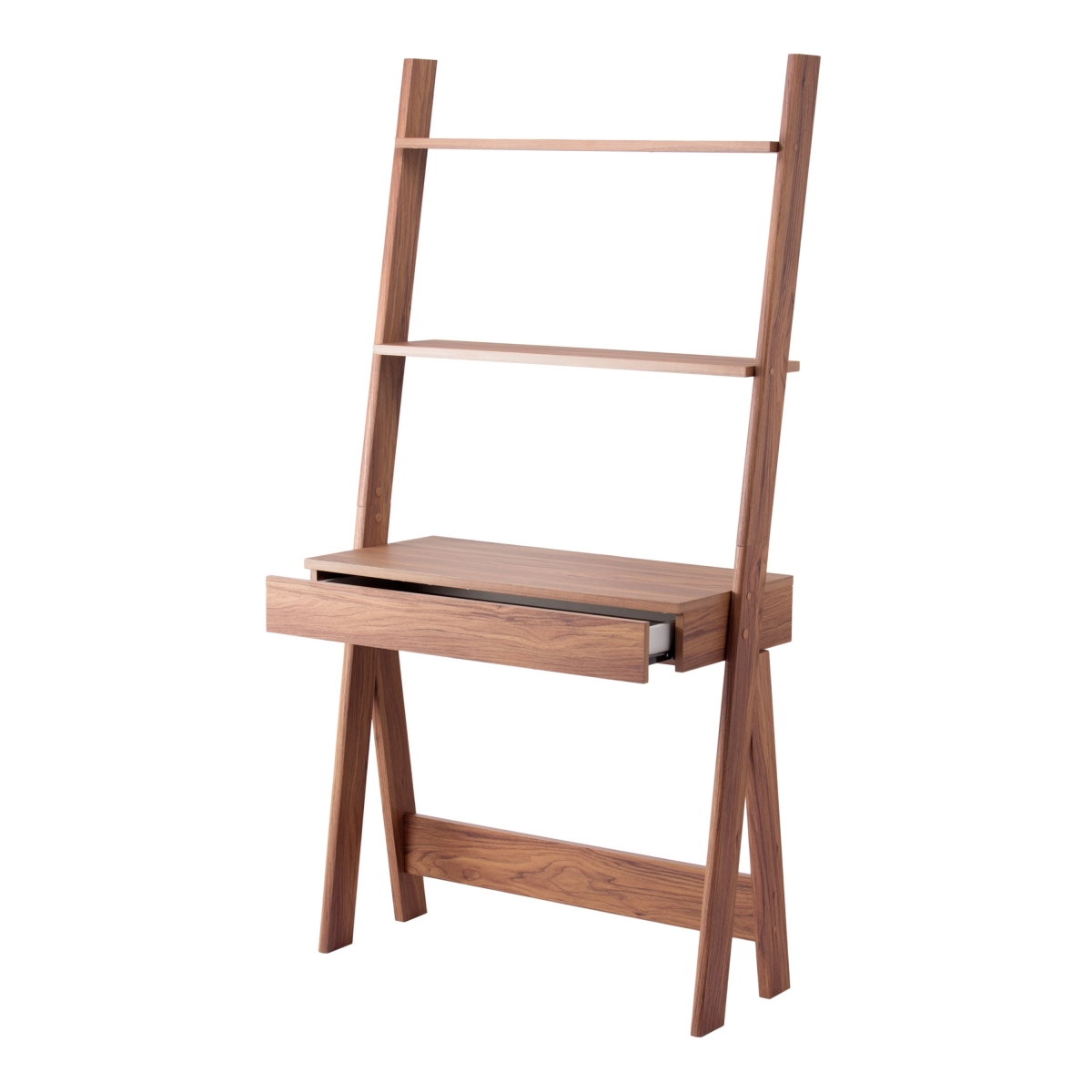 When space is at a premium, Reeve stair desk offers a work area, open storage and decorative display, all in a compact 32-inch-wide profile. A drawer offers concealed storage; the two shelves are fixed.<br/><br/>Features :<br/><br/>- Materials: MDF, particle board, printed veneer<br/>- Finish: Walnut, brown<br/>- 2-shelves leaning library provides space-saving function while keeping things organized and decorated at the same time. Display books, magazines, plants and more<br/>- Easy to clean, simply dust or spot clean with damp cloth, then wipe dry immediately.<br/>- Pattern: Solid<br/>- Tipover Restraint Device: Yes.<br/><br/>Specifications :<br/><br/>- Product Dimensions : 65"H x 33"W x 15.5"D<br/>- Product Weight : 40 lbs<br/>- Warranty : Limited one year manufacturer<br/>- Weight Capacity : (Shelf) 6 lbs, 20 lbs, (Desk) 44 lbs, (Drawer) 7 lbs.