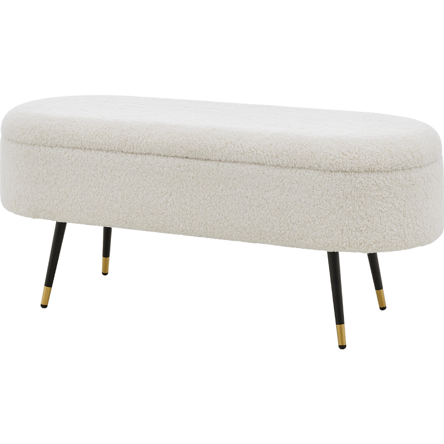 npd furniture and more Phoebe KD Faux Shearling Fabric Storage w/Gold Tip Metal Legs Bench, Beige