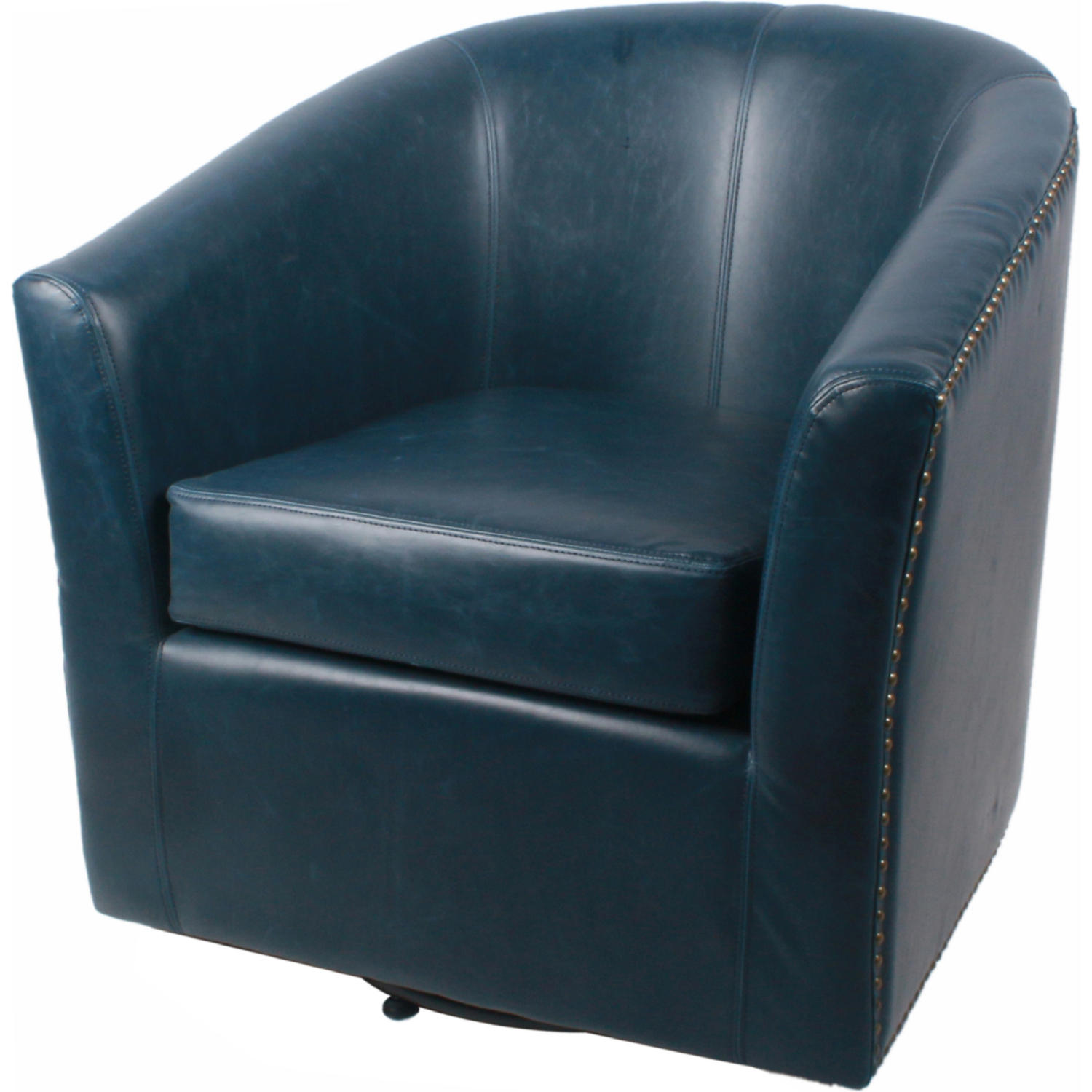 New Pacific Direct Ernest Bonded Leather Swivel Chair,Vintage Blue,Fully Assembled
