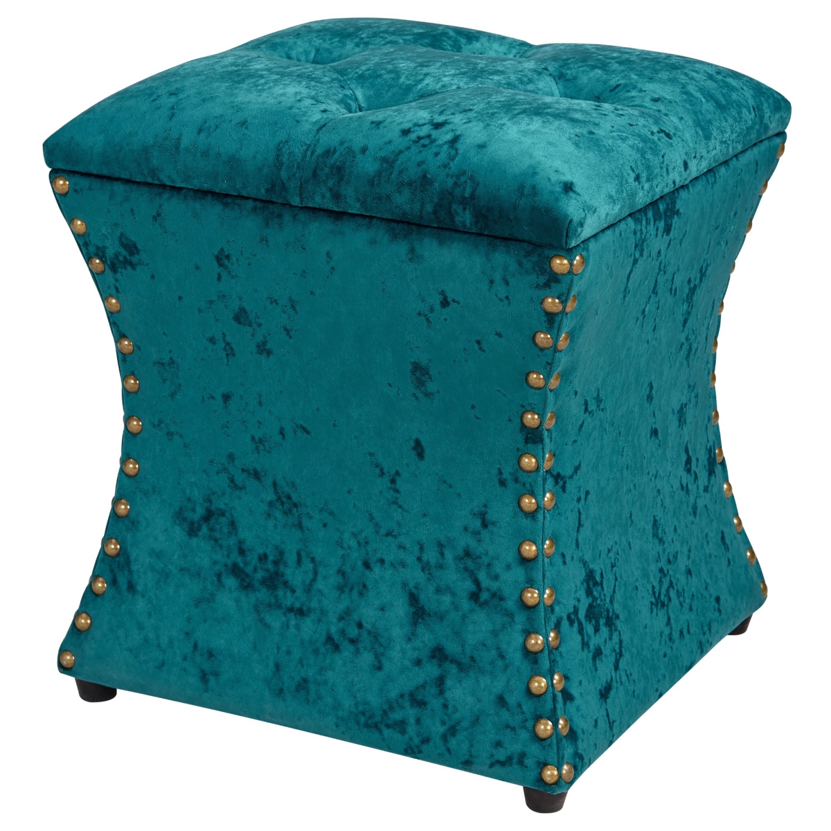 New Pacific Direct 1900131-381 18 x 18 x 20 in. Amelia Velvet Nailhead Tufted Storage Ottoman, Persian Turquoise Blu