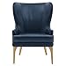 - Luxe, classic wingback & sturdy- in top grain blue tone leather upholstery fashioned on natural oak splayed legs, this high, wing back chair provides sufficient seating space for a cozy respite. Ideal for the living room or bed room.