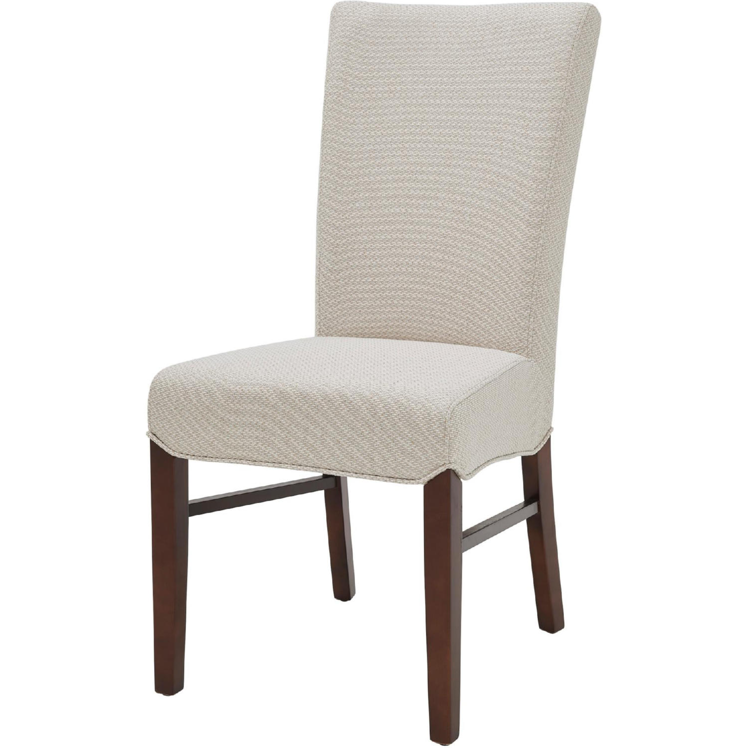 - Classic Parsons style chair is understated, yet a nice complementary for the dining room. Featuring high back in polyester fabric upholstery and dark wood color legs, this chair provides a clean and contemporary style. Versatile for many interior décor.