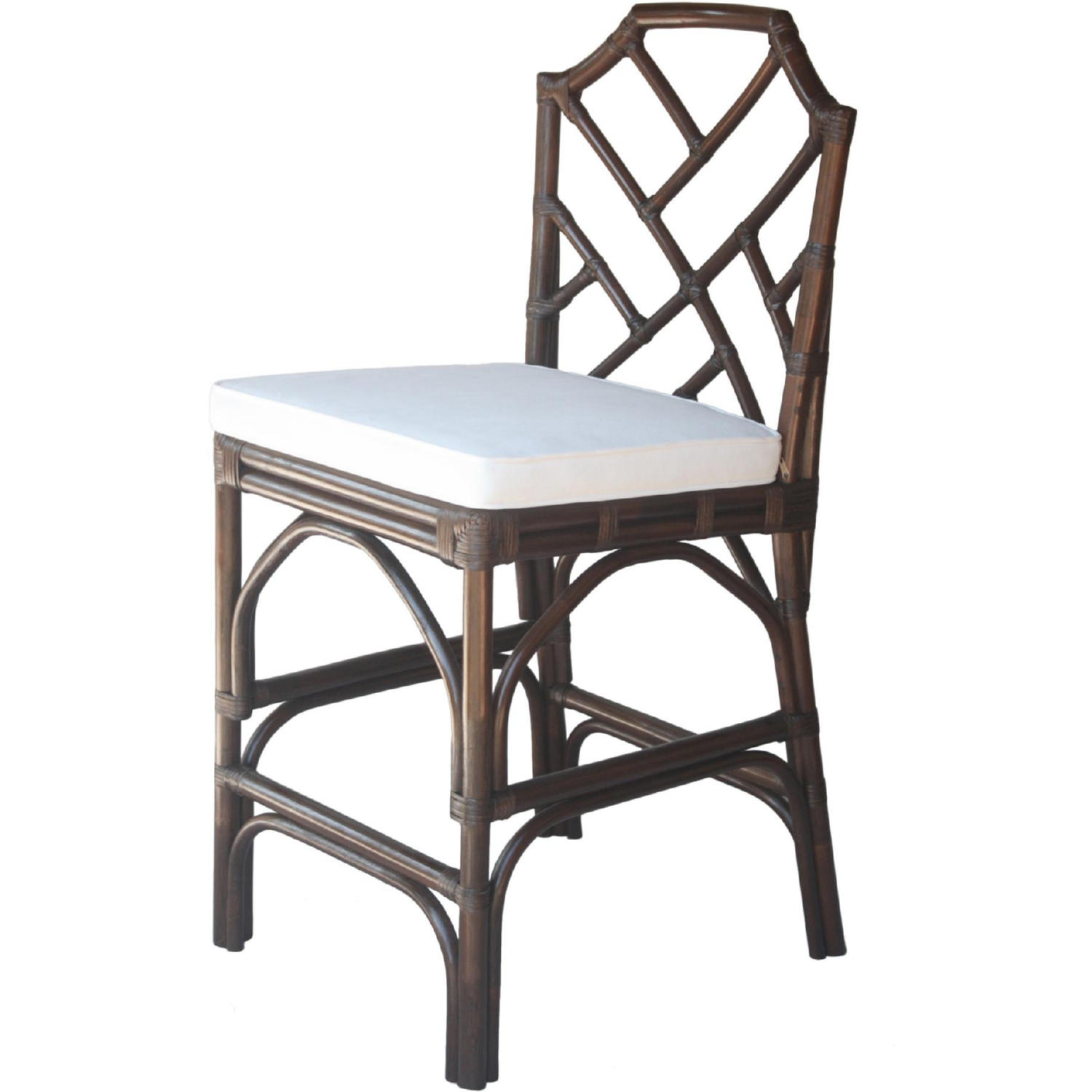 - Sturdy rattan poles frames this classic revival Chinese Chippendale 27" seat height counter stool. Complete with interlocking geometric lines in shield back design, an elegant addition to a coastal or classic style interior decor.