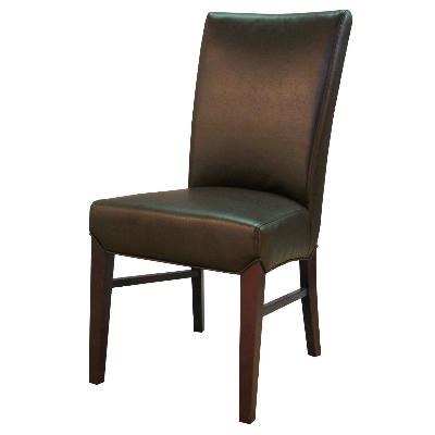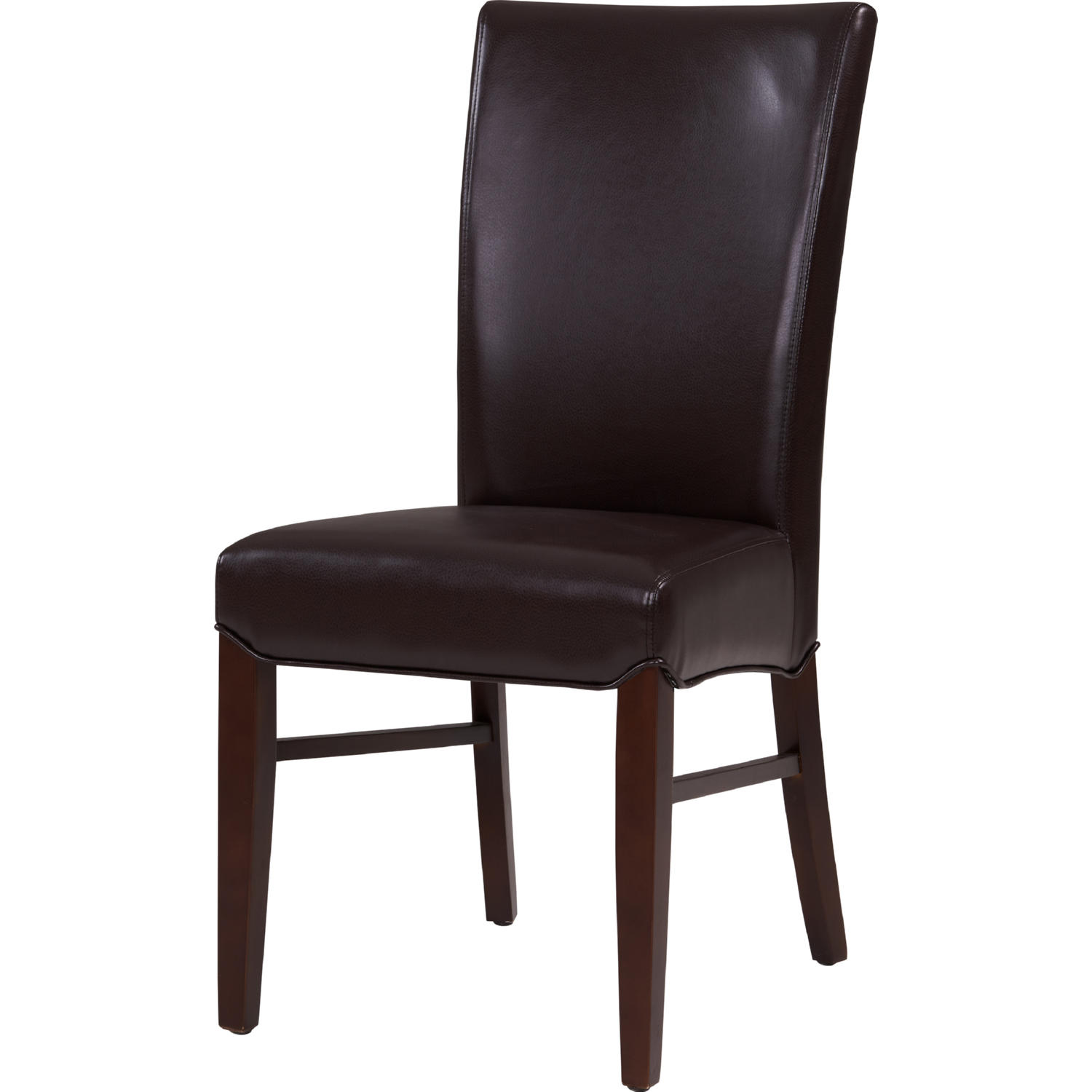 - Classic Parsons style chair is understated, yet a nice complementary for the dining room. Featuring high back with in bonded leather and dark wood color legs, this chair provides a clean and contemporary style. Looks great in a farmhouse or coastal modern theme interiors.