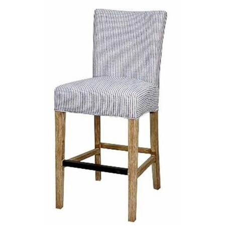 New Pacific Direct Milton Fabric Bar Stool,Natural Wood Legs,Blue Stripes,Fully Assembled