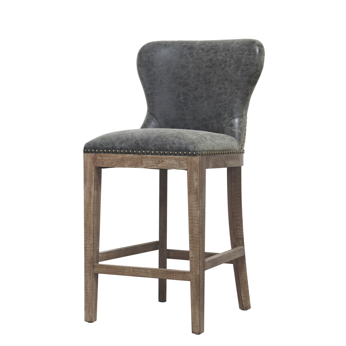 - TRANSITIONAL TO MODERN FARMHOUSE - Wing back style 26" height counter stool featuring Nubuck Charcoal faux leather upholstery with nailheads trim, foot rest bar for stability and rubber feet for scratch prevention.