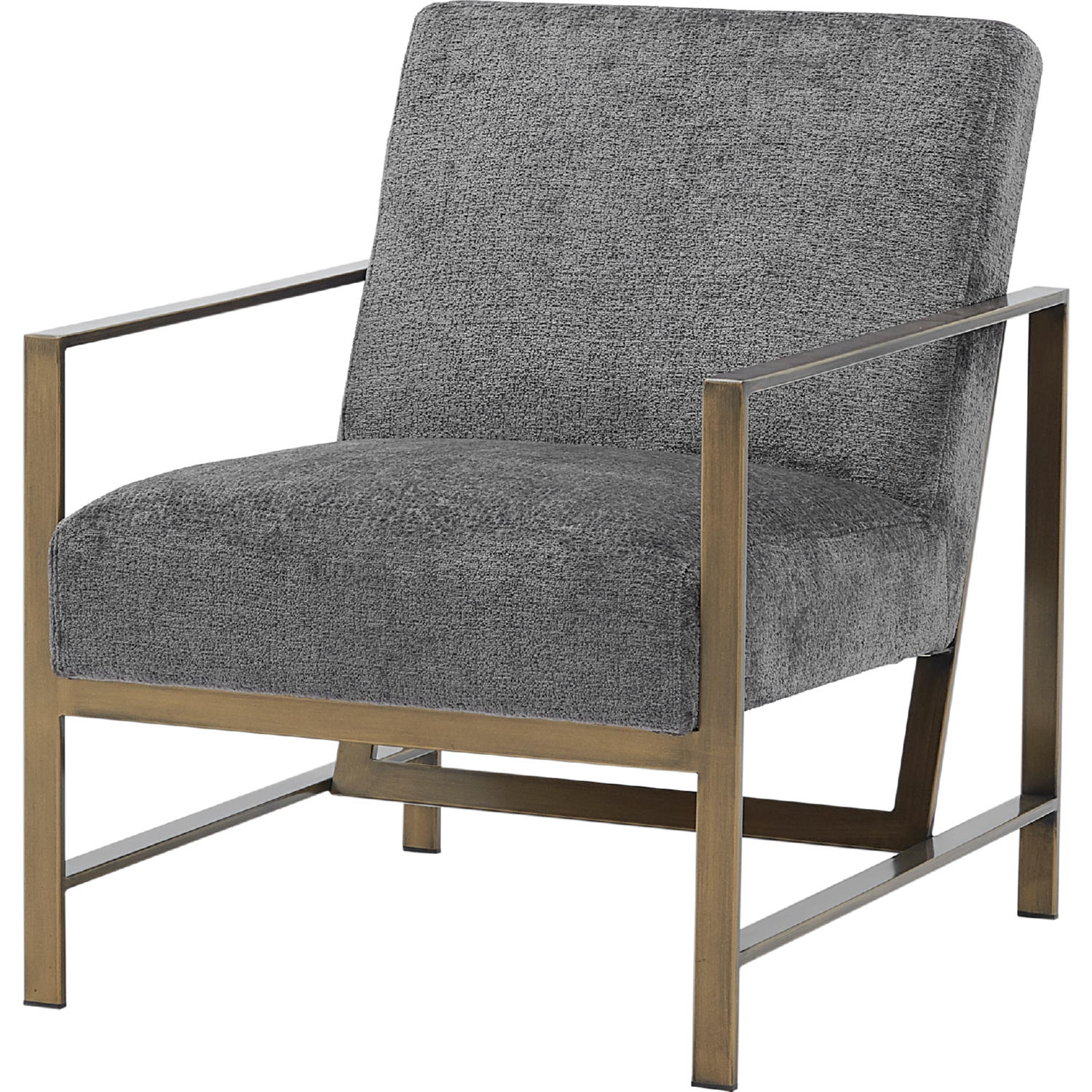 - Elegant and minimalist modern arm chair features high-density foam cushion for cozy lounging that's fashioned on streamlined painted brushed gold steel frame.