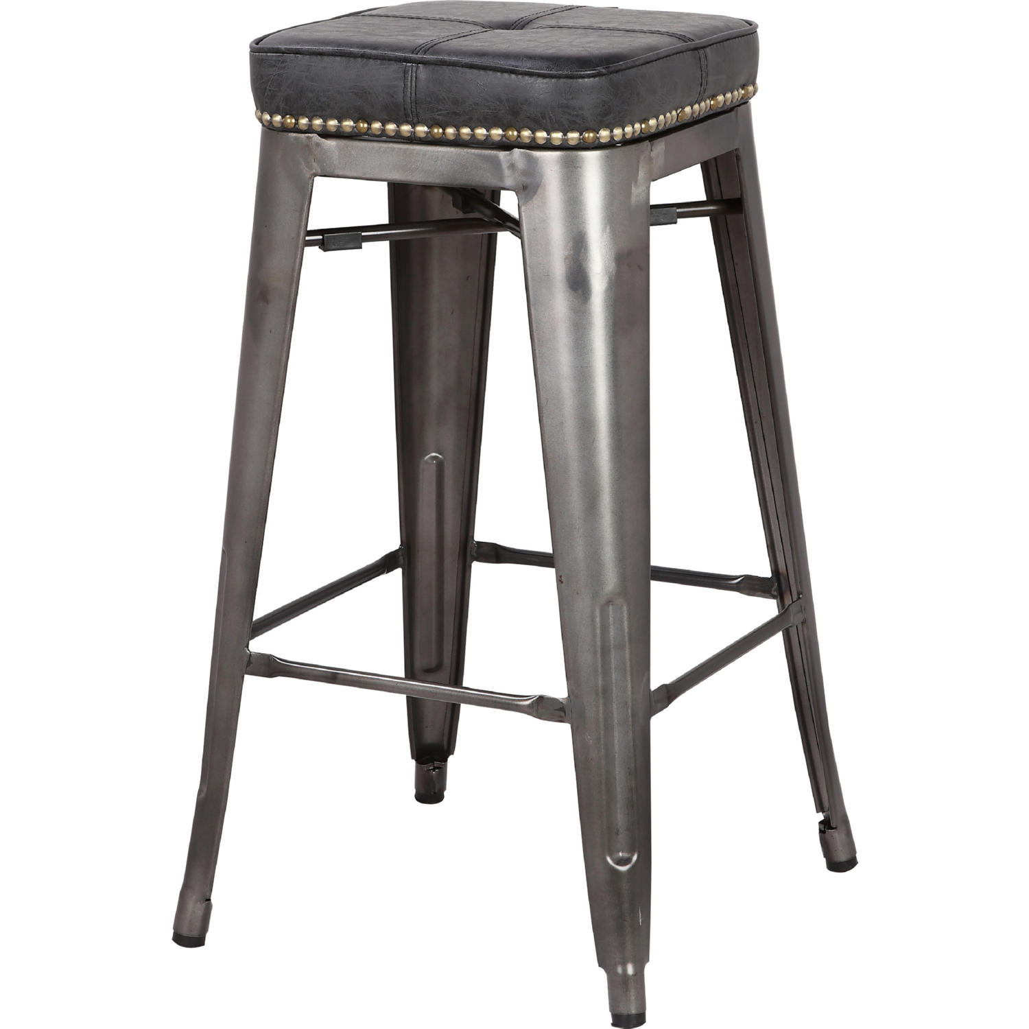Metropolis Collection 9300028-240 Set of 4 PU Leather Metal Backless Counter Stools in Vintage Black Color