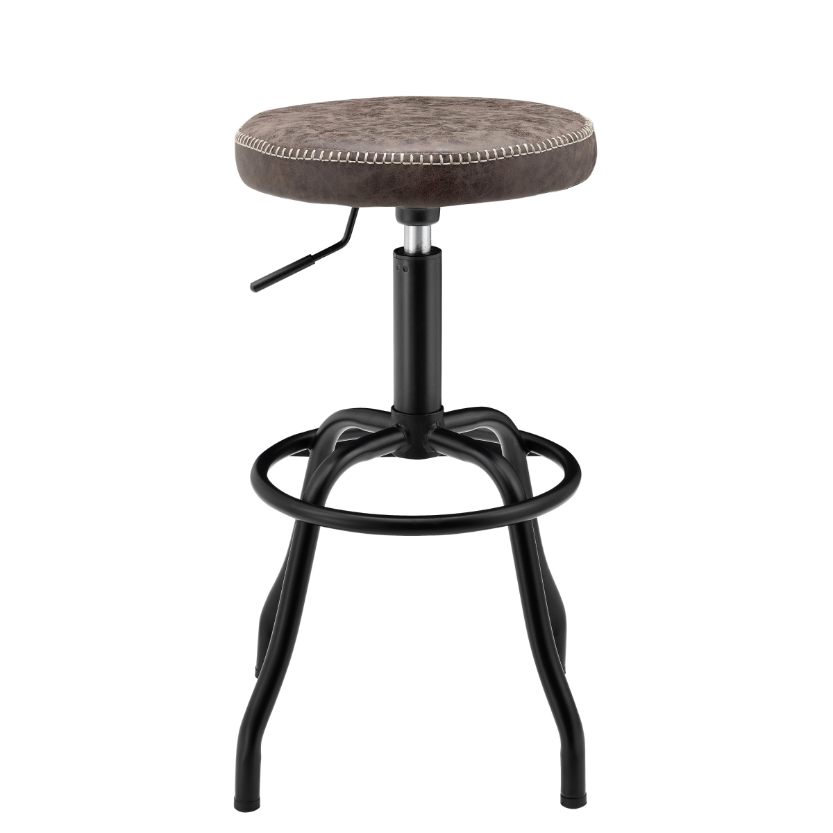 9300042-238 Eaton Collection 14 Gaslift Bar Stool with Stitching Details, Powder Coat Steel Legs, Adjustable Height and Faux Leather, in Vintage Coffee Brown