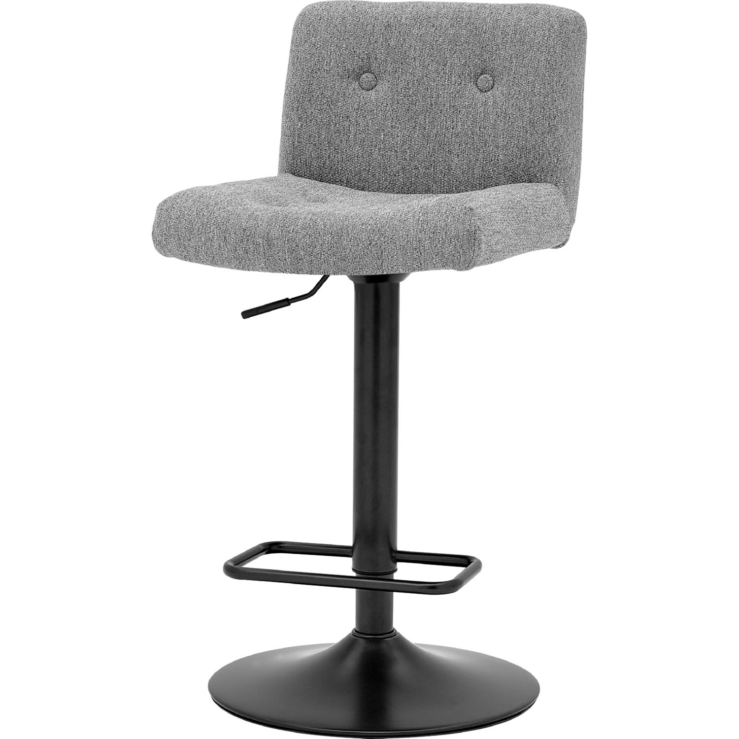 - Easy and contemporary style bar stool with button tufted back and cozy cushioning on chic monochrome cover. Heights are adjustable between 34" - 42" and swivel 360-degree. Square footrest on pedestal frame for comfort and safety.