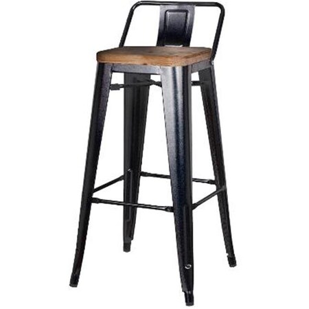 New Pacific Direct Metropolis Metal Low Back Bar Stool 30" Wood Seat,Indoor/Outdoor Ready,Black,Set of 4