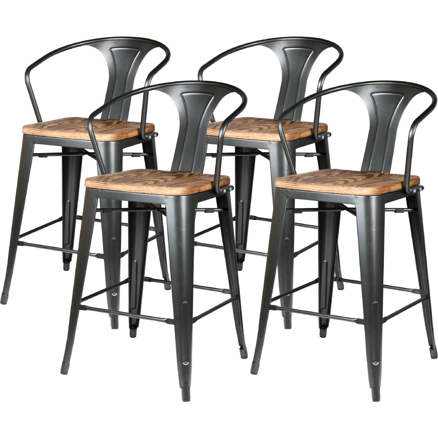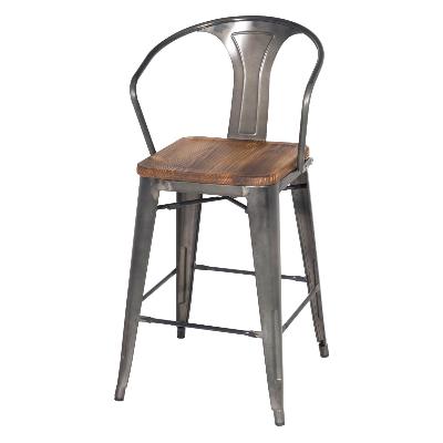 Metropolis Collection 938541-GM Set of 4 Metal Counter Stools Wood Seat in Gunmetal Color