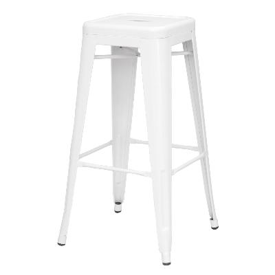 - Popular 26" height stackable bistro and café style metal counter stool. Featuring X-brace seat support and stretcher foot rest bar for stability, rubber feet for scratch prevention. UV Treated for indoor and outdoor use, except Gunmetal color is indoor only.