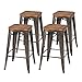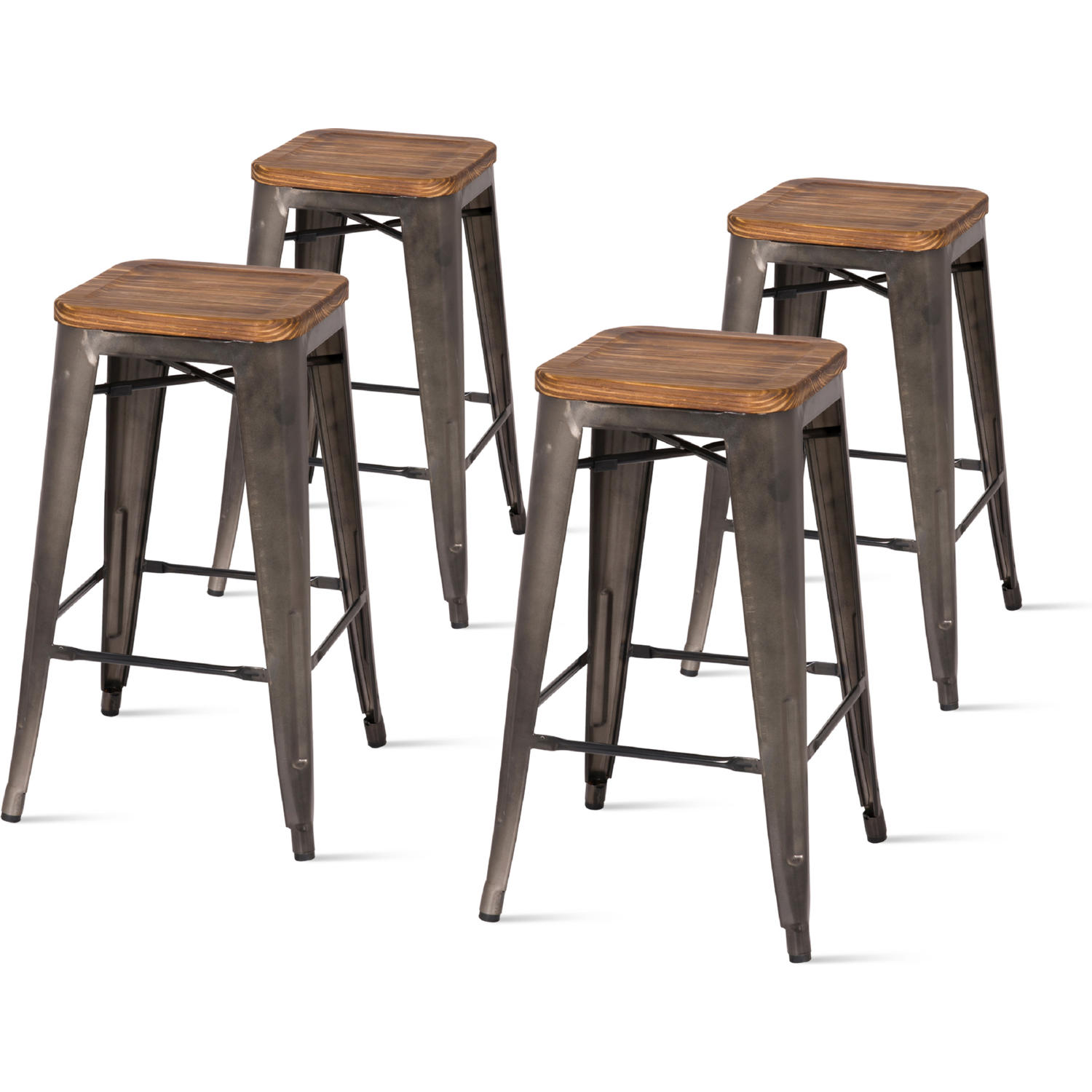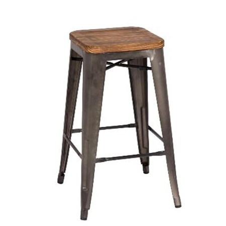 Metropolis Collection 938627-GM Set of 4 Backless Counter Stools Wood Seat in Gunmetal Color