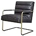 - MODERN VINTAGE - stylish channel tufting in vintage navy bonded leather upholstery, leather arm bands and brass painted cantilever legs makes this chair a handsome addition to a bachelor's pad or modern living room decor.