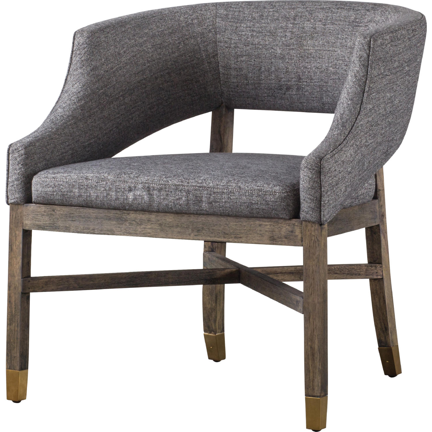 - Modern mid-century profile with unique crisscross base in stylish gold metal-tipped rubber wood legs and understated Gray hue.