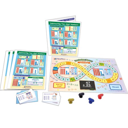 NewPath Learning 23-6921 Subtracting Two-Digit Numbers Learning Center Game (Grades 1-2) - Game Board, 30 Illustrated Game Cards and Four 4-Panel, Laminated “Write-On/Wipe-Off” Learning Guides