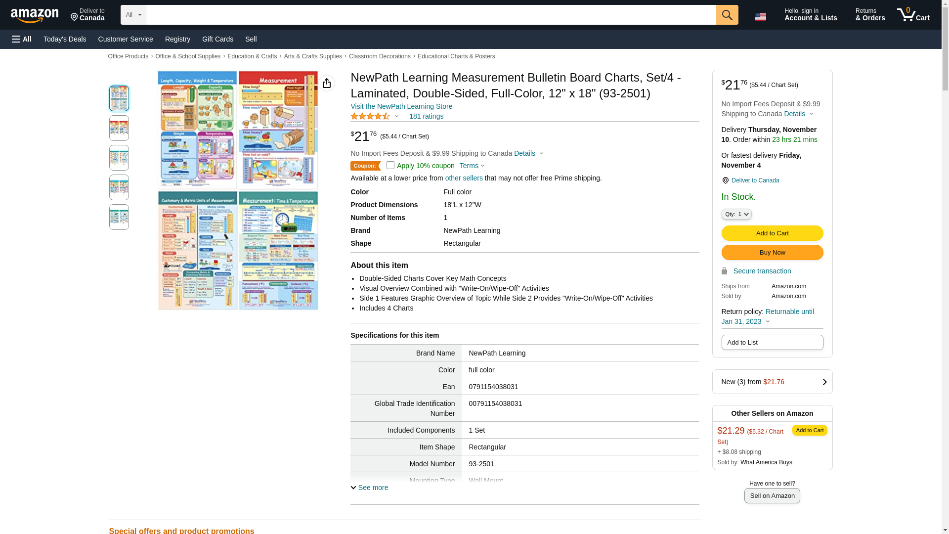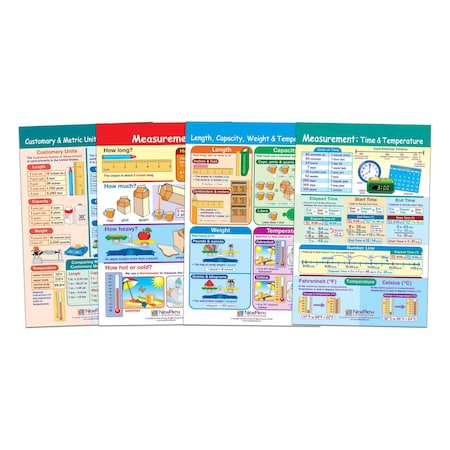 NewPath Learning Measurement Bulletin Board Charts, Set/4 - Laminated, Double-Sided, Full-Color, 12" x 18" (93-2501)