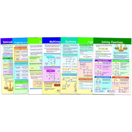 NewPath Learning Algebra Skills Bulletin Board Charts, Set/7 - Laminated, Double-Sided, Full-Color, 12" x 18" (93-6505)