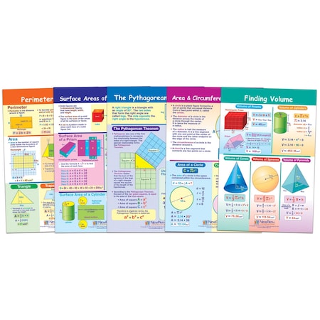 NewPath Learning Perimeter, Circumference, Area & Volume Bulletin Board Charts, Set/5 - Laminated, Double-Sided, Full-Color, 12" x 18" (93-6506)