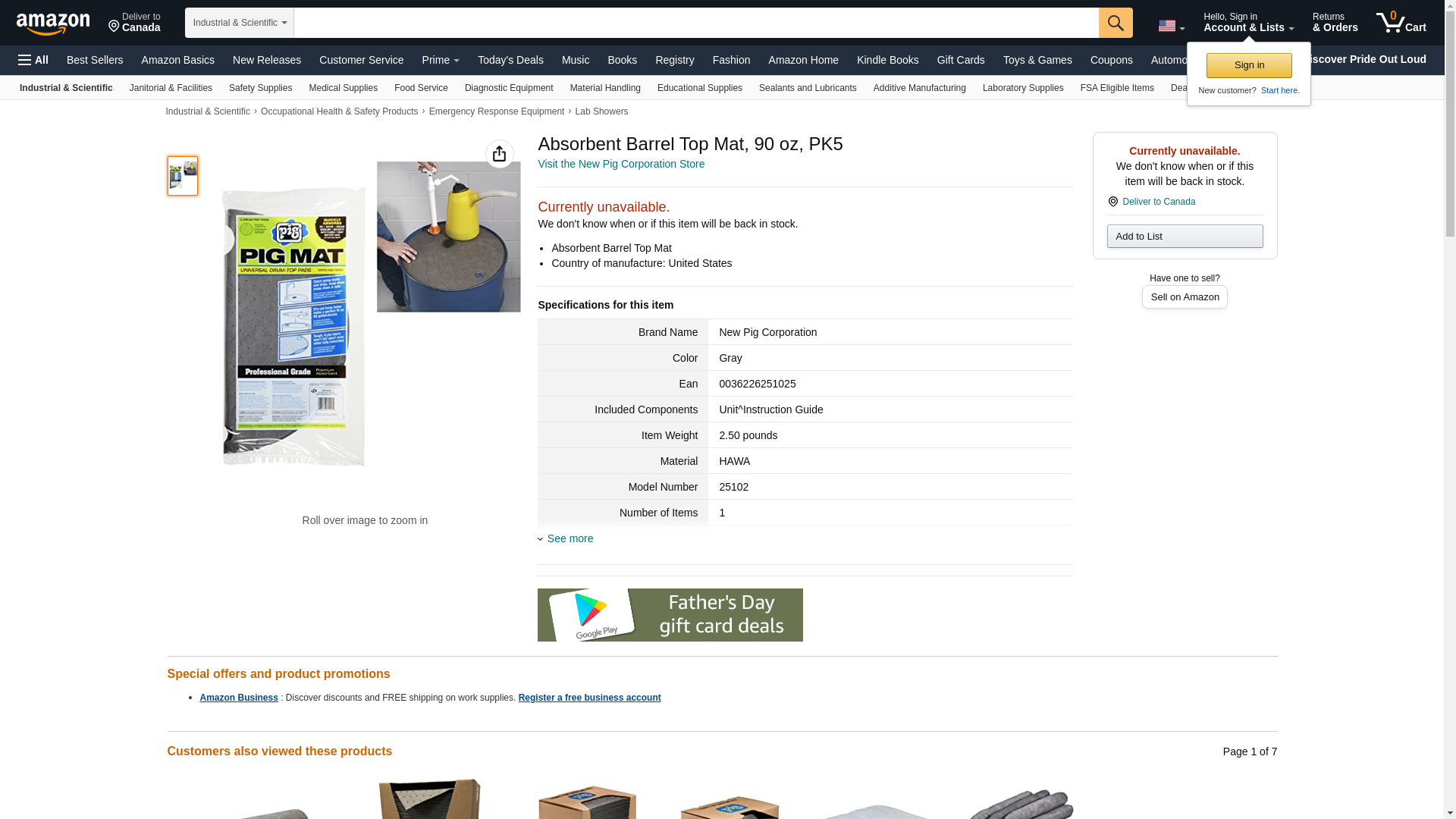 | Feature | Price For: Each Item: Absorbent Barrel Top Mat Material: Polypropylene Absorbency Weight: Light Volume Absorbed Per Pkg.: 90 oz. Fluids Absorbed: Universal / Maintenance Color: Gray Country of Origin (subject to change): United States |