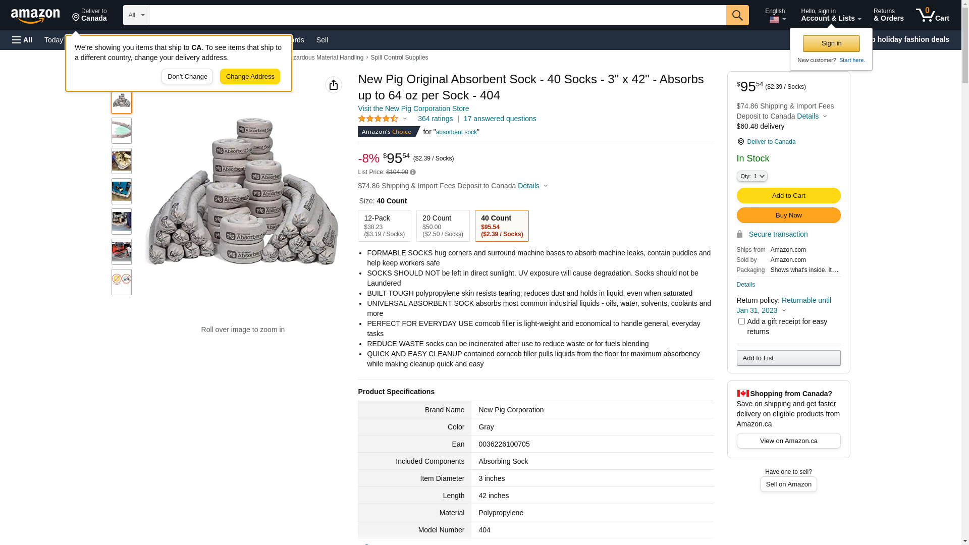 | Feature | <b>Price For:</b> Each <b>Material</b>: Polypropylene, Organic Cellulosic <b>Item</b>: Absorbent Sock <b>Length</b>: 3 ft. 6" <b>Color</b>: Gray <b>Volume Absorbed Per Pkg.</b>: 20 gal. <b>Fluids Absorbed</b>: Universal / Maintenance <b>Diameter</b>: 3" <b>Country of Origin (subject to change)</b>: United States |