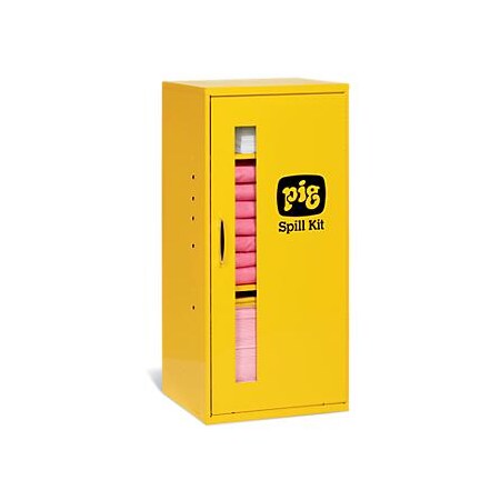 Hazmat Spill Kit in Small Wall-Mount Cabinet, Absorbs Hazardous Chemicals - Acids, Bases & Unknowns, 10-Gal Absorbency, New Pig KIT315, Yellow