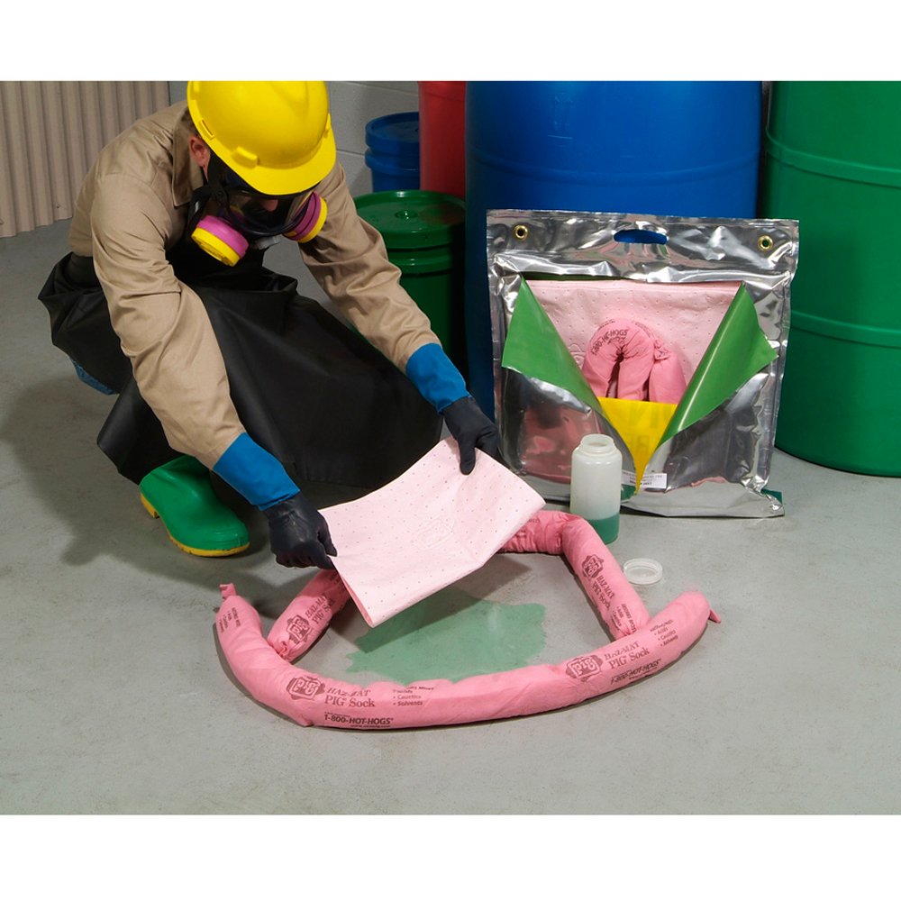 - Pig hazmat Socks stop spreading spills; Pig hazmat Pads absorb quickly