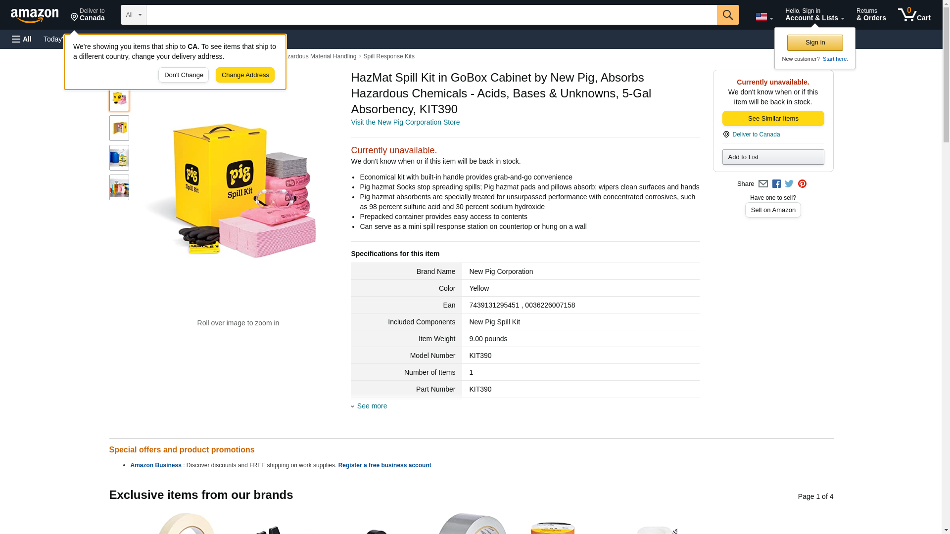 Hazmat Spill Kit in GoBox Cabinet by New Pig, Absorbs Hazardous Chemicals - Acids, Bases & Unknowns, 5-Gal Absorbency, KIT390, Yellow