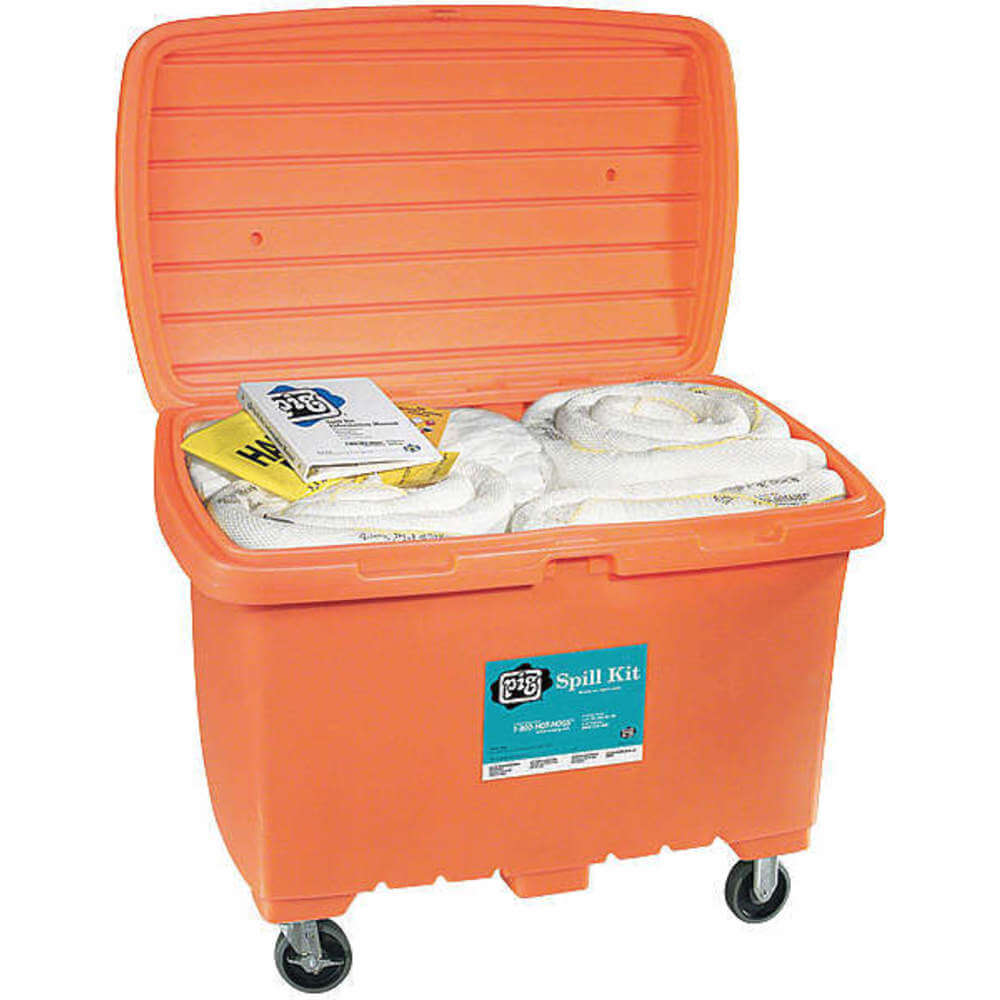 New Pig Oil-Only Spill Kit in High-Visibility Storage Chest, 5" Rubber Wheels, 74-Gal Absorbency, Absorbs Oils & Fuels, Repels Water, Wheeled Mobile Oil Cleanup Kit, Hi-Viz Orange, KIT479-OR