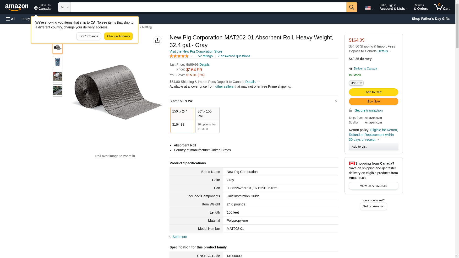 New Pig Absorbent Mat Roll - 24" x 150' Heavyweight Mat Roll - Absorbs up to 32.4 Gallons - MAT202-01