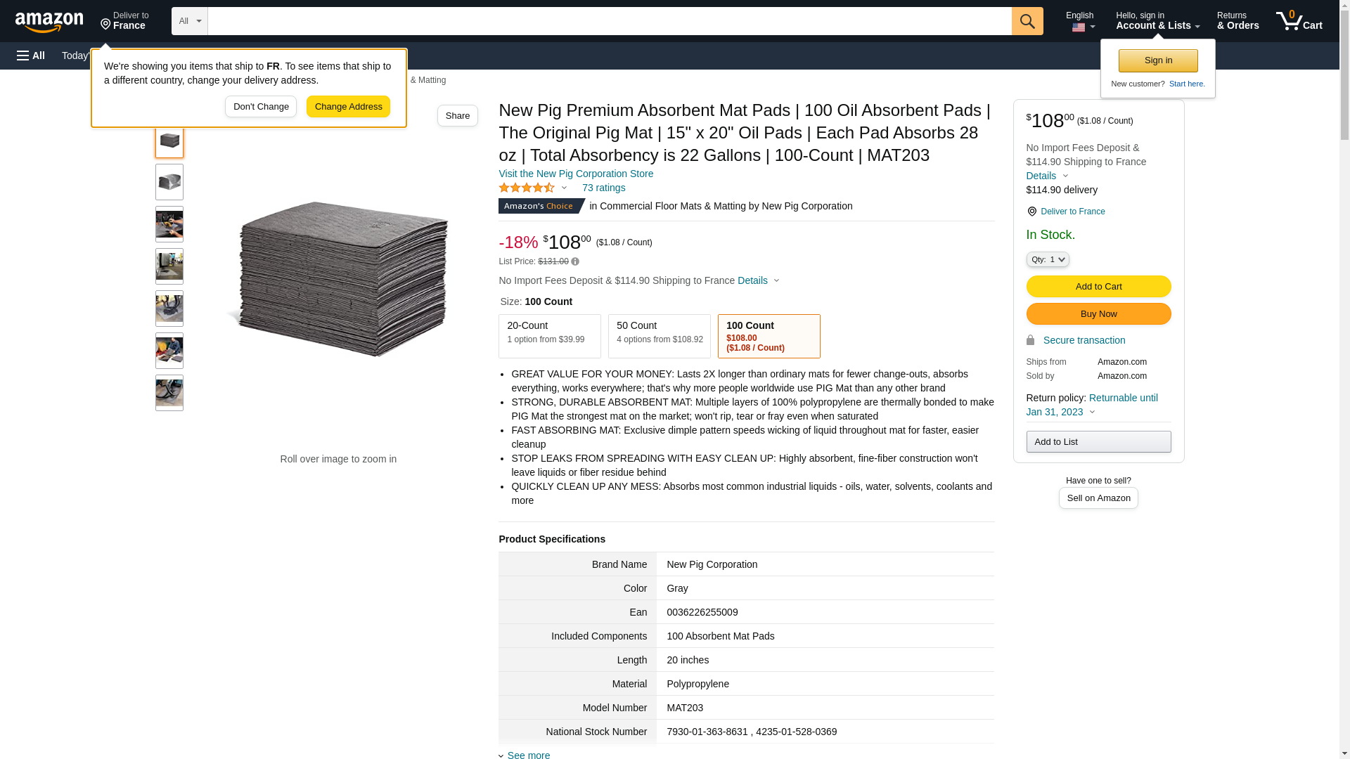 New Pig Premium Absorbent Mat Pads | 100 Oil Absorbent Pads | The Original Pig Mat | 15" x 20" Oil Pads | Each Pad Absorbs 28 oz | Total Absorbency is 22 Gallons | 100-Count | MAT203