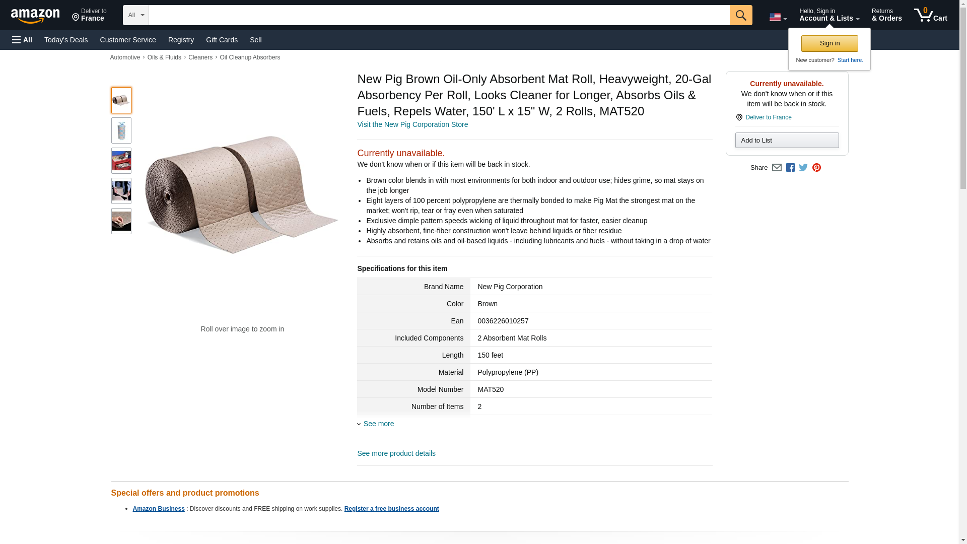 New Pig Brown Oil-Only Absorbent Mat Roll, Heavyweight, 20-Gal Absorbency Per Roll, Looks Cleaner for Longer, Absorbs Oils & Fuels, Repels Water, 150' L x 15" W, 2 Rolls, MAT520