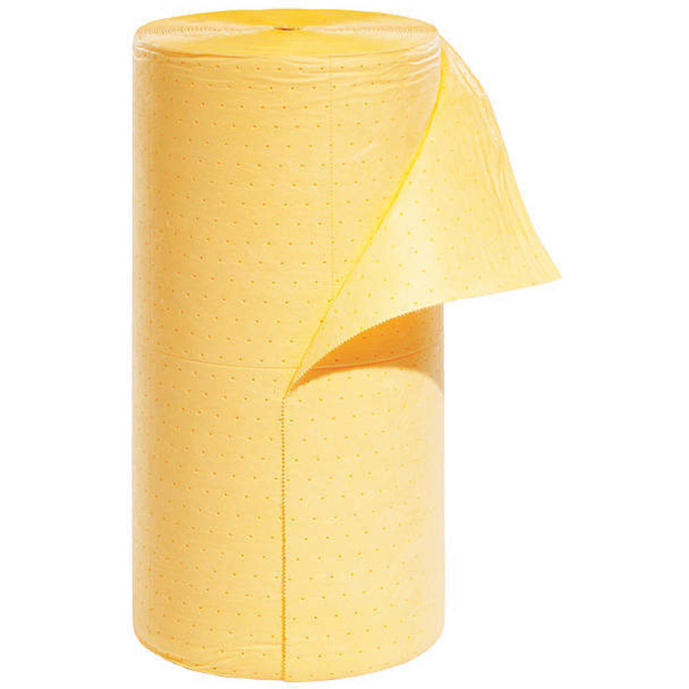 Everyone will know there's a cleanup in progress when you use our Yellow Mat. Hi-viz spill absorbents alert workers to potential hazards or repairs. High-visibility yellow color is easier to see in poorly lit areas to minimize tripping hazards; alerts workers to potential dangers and work in progress Eight layers of 100% polypropylene are thermally bonded to make PIG Mat the strongest mat on the market; won't rip, tear or fray even when saturated Exclusive dimple pattern speeds wicking of liquid throughout mat for faster, easier cleanup Highly absorbent, fine-fiber construction won't leave liquids or fiber residue behind Absorbs most common industrial liquids - oils, water, solvents, coolants and more Flame-resistant material won't burn immediately like cellulose mats; melts when exposed to high heat while on the job Rolls are ideal for covering large areas and soaking up leaks and overspray Easy-tear perforations let you take only what you need, so you use less mat and save money Light-weight construction is ideal for small tasks and cleanups Fluid Absorbed: Oils, Coolants, Solvents, Water Special Feature: High-Visibility Color: Yellow Dimensions: 30" W x 300' L Absorbency: Up to 40.3 gal. per bag Absorbency per: Up to 40.3 gal. per roll Durability Level: Normal Foot Traffic Mat Weight/Absorbency Level: Lightweight Perforated: Perforated Every 10" Lengthwise & Centered Widthwise Sold as: 1 roll per bag Weight: 30 lbs. # per Pallet: 12 Composition: Polypropylene UNSPSC: 47131901 UV Resistant: No