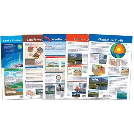 New Path Learning Bulletin Board Charts are Uniquely designed, while one side can be posted for student reference, the reverse features dry-erase activities perfect for individual student review or as a learning center activities!Each Bulletin Board Chart Set includes a collection of separate posters, each covering a separate, curriculum topic. Uniquely designed, while one side can be posted for student reference, the reverse features dry-erase activities perfect for individual student review or as a learning center activities! Graphic images and hands-on activities combine to provide comprehensive coverage of essential student skills and cover the current state and national standards- including Next Generation Science (NGSS)! Each 12"" x 18"" Chart is laminated and double-sided- Side 1 features a graphic overview of the topic and Side 2 provides ""write-on/wipe-off"" activities. Covers Earth- Inside & Out; Changes on Earth; Earth's Freshwater & Atmosphere; Landforms, Rocks & Soil; and Weather & Climate.- Provides comprehensive coverage of essential student skills and cover the current state and national standards.- Visual Overview Combined with ""Write-On/Wipe-Off"" Activities.- Each Double-Sided 12"" x 18"" Chart is Laminated & Double-Sided.- Perfect for individual student review or as a learning center activities.- Includes 5 Charts.- Sold as 5 pieces/Set.