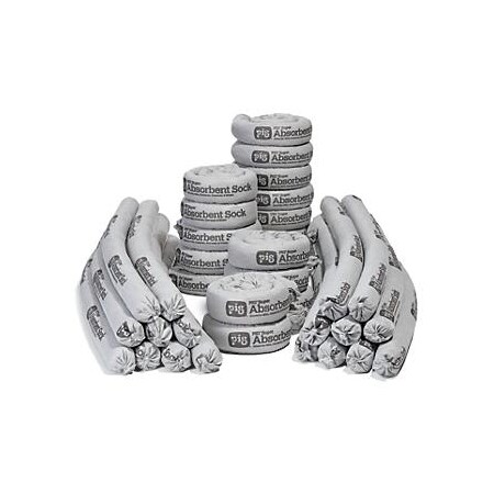 New Pig Super Absorbent Sock, 64 oz Absorbency, 2.25" Dia x 42" L, Control High-Volume Leaks, Gray (Box of 35), PIG212