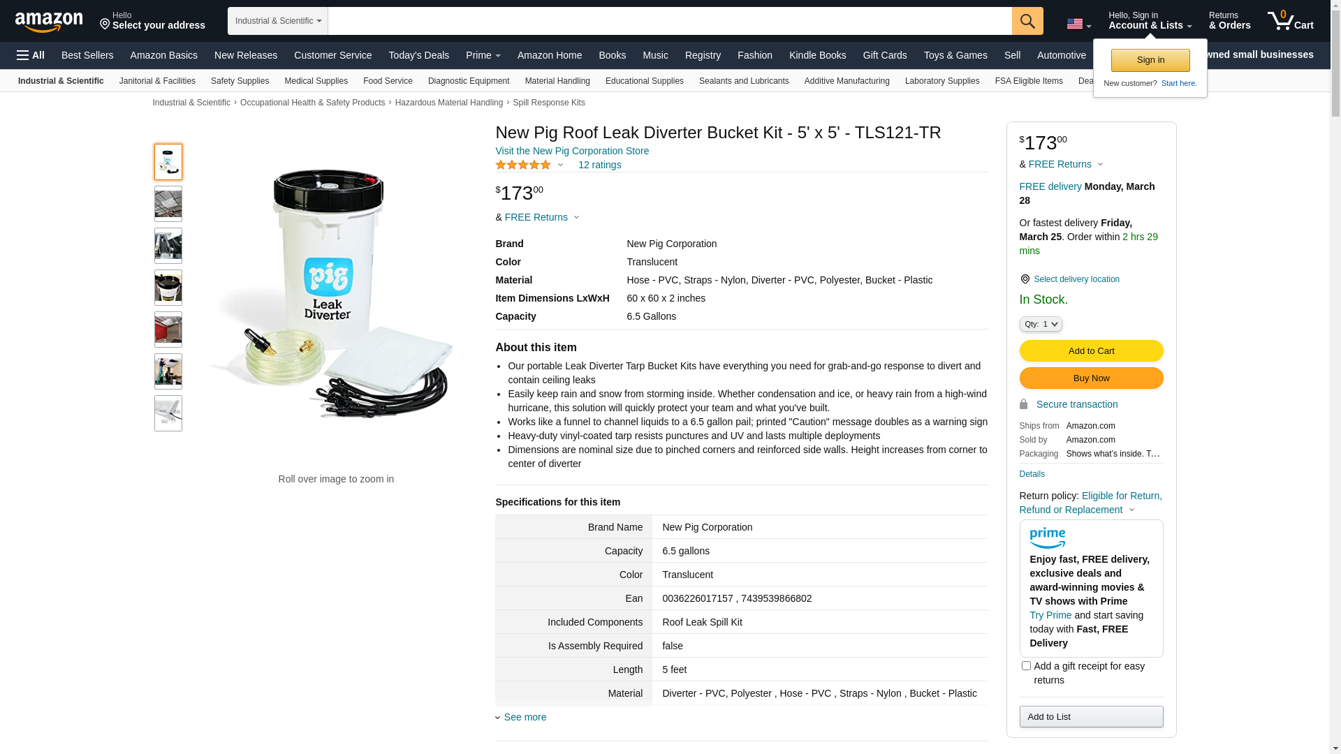 New Pig Roof Leak Diverter Bucket Kit - 5' x 5' - TLS121-TR