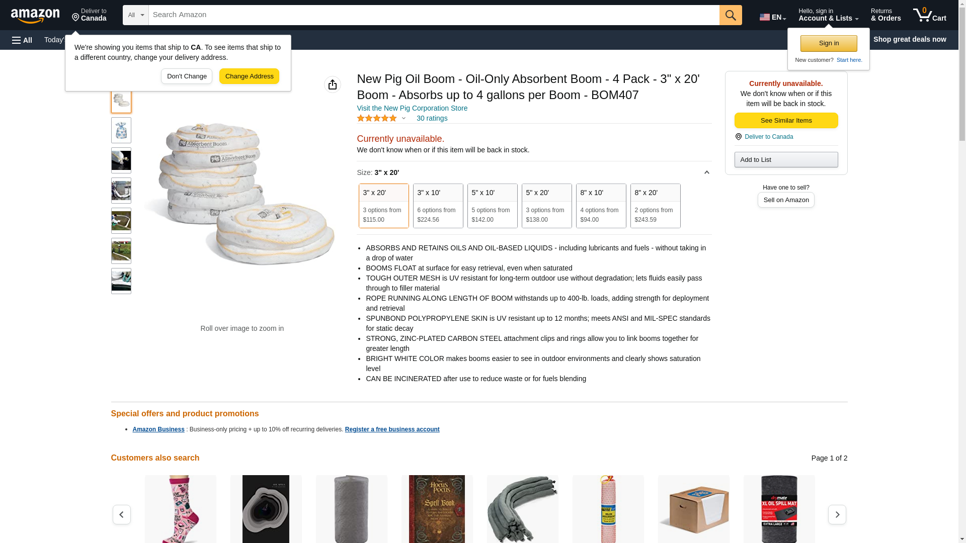 New Pig Oil Boom - Oil-Only Absorbent Boom - 4 Pack - 3" x 20' Boom - Absorbs up to 4 gallons per Boom - BOM407