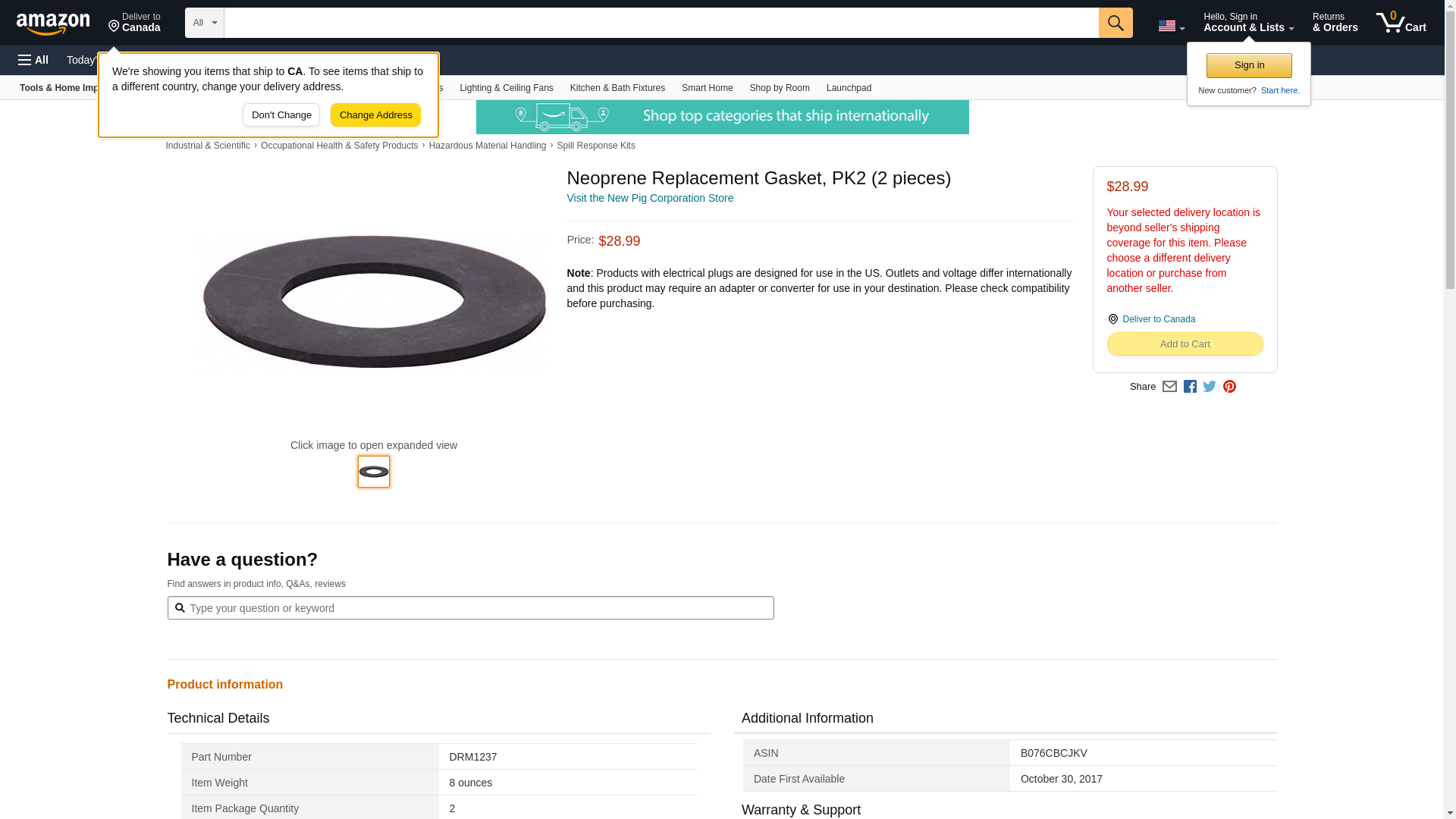 | Feature | <b>Price For:</b> Pack of 2 <b>Item</b>: Neoprene Replacement Gasket <b>Country of Origin (subject to change)</b>: United States |
