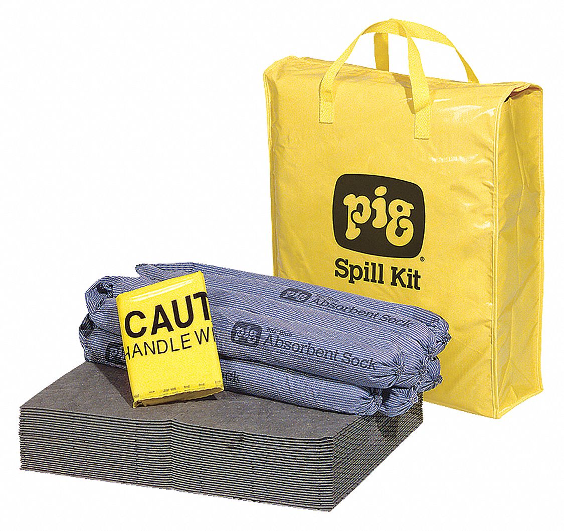 New Pig Spill Kit | High-Visibility Spill Kit | Absorbs Oils, Water & More | 9 Gallon Absorbency | Hi-Viz Portable Bag | KIT220