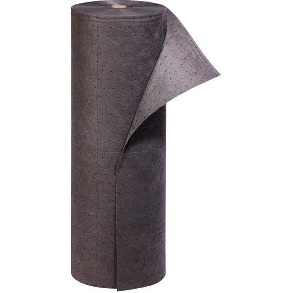 New Pig Absorbent Mat Roll. Flame-resistant material won't burn immediately like cellulose mats; melts when exposed to high heat while on the job. Can be wrung out and incinerated after use to reduce waste or for fuels blending. Rolls are ideal for covering large areas and soaking up leaks and overspray. Easy-tear perforations let you take only what you need, so you use less mat and save money. Light-weight construction is ideal for small tasks and cleanups. Measures 150-feet length by 30-inches width. 50 percent recycled content. Absorbency: up to 20.1 gallon per roll. Perforated: every 10" lengthwise and centered width-wise.