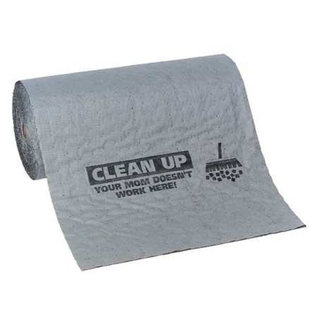 Safety Message Mat, New Pig Chat Mat Gray Absorbent Roll,"Mom Doesn't Work Here/Clean Up", 13 Gal Absorbency, 75' x 24", MAT608-748