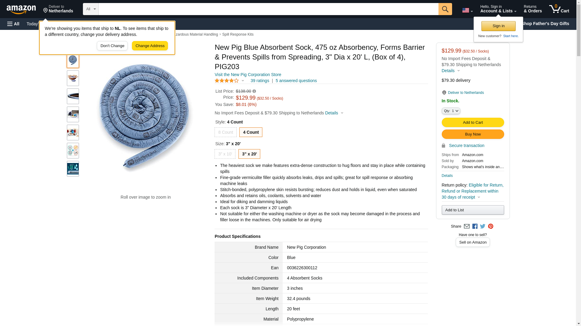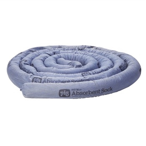 Our heaviest absorbent sock forms a barrier to prevent spills from spreading. The heaviest sock we make features extra-dense construction to hug floors and stay in place while containing spills Fine-grade vermiculite filler quickly absorbs leaks, drips and spills; great for spill response or absorbing machine leaks Stitch-bonded, polypropylene skin resists bursting; reduces dust and holds in liquid, even when saturated Absorbs most common industrial liquids - oils, water, solvents, coolants and more Ideal for diking and damming liquids Can be air-dried for reuse when soaked with water Nobody knows more about socks than New Pig - we invented them! Fluid Absorbed: Oils, Coolants, Solvents, Water Color: Blue Dimensions: ext. dia. 3" x 20' L Absorbency: Up to 14.84 gal. per box Absorbency per: Up to 475 oz. per sock Configuration: Sock Filler: Vermiculite Skin/Outer Mesh: Skin - Polypropylene Sold as: 4 socks per box Weight: 32.43 lbs. NSN (National Stock Number): 4235-01-416-8372 # per Pallet: 12 Application: Spill Response UNSPSC: 47131904